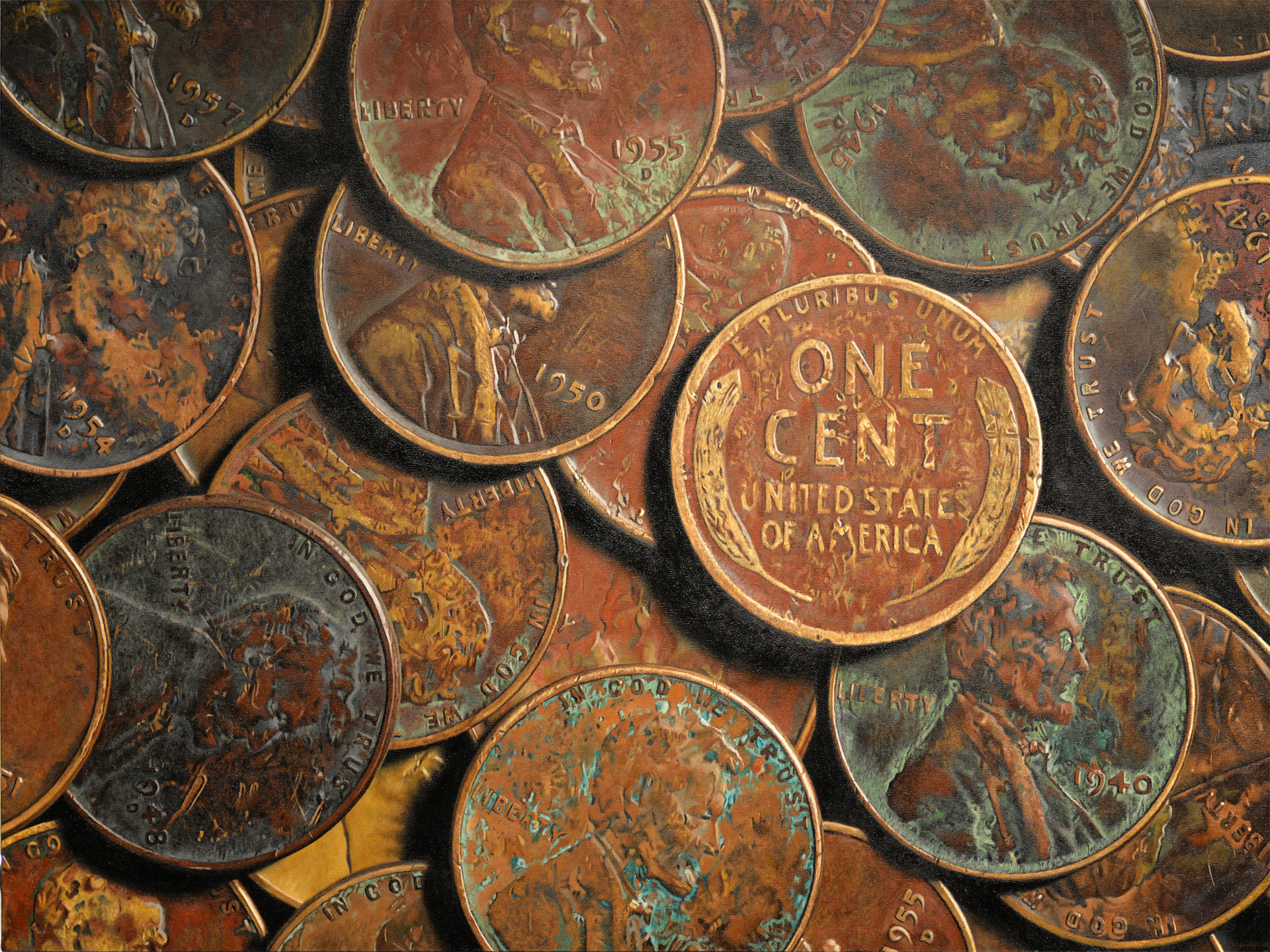 The Wheat Pennies painting will be in the upcoming exhibition, Memory Palace: An International Exhibit Exploring Time, History and Memory, held at Manifest Gallery in Cincinnati, Ohio opening January 22 and ending February 19. There will be 14 works by 13 artists in the show.